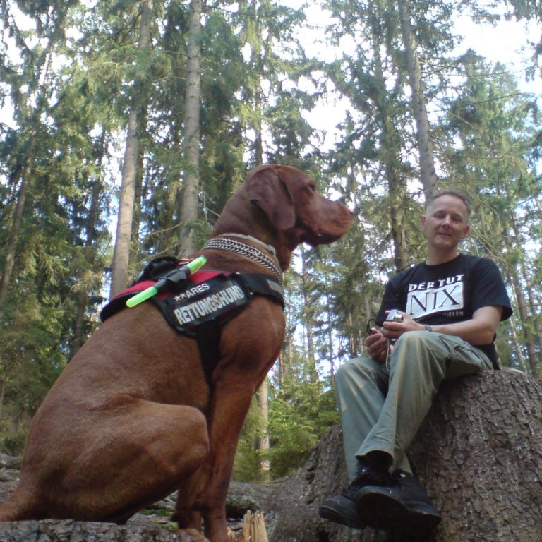 Ich war von 2008 bis 2013 Rettungshundeführer in der Rettungshundestaffel der Feuerwehr Bad Berka. Unsere Staffel war des Weiteren Mitglied in der Internationalen Rettungshundeorganisation. Mein Wissen und meine Erfahrung möchte ich gern weitergeben. Die Ausbildung zum Rettungshund ist eine intensive und anspruchsvolle Aufgabe, die sowohl die physische als auch die mentale Stärke des Hundes erfordert. Während meiner Zeit in der Rettungshundestaffel habe ich viele wertvolle Techniken zur Hundeerziehung erlernt, die nicht nur das Vertrauen zwischen Hundeführer und Hund stärken, sondern auch die Effizienz in Rettungssituationen erhöht. Es ist faszinierend zu sehen, wie aus einem Welpen ein hochqualifizierter Rettungshund wird, der im Ernstfall Leben retten kann. Dieser Zeitraum war ein Wendepunkt für mich. Es hat meine Sicht auf Hunde grundlegend verändert – eine Erfahrung, die ich heute voller Herzblut in meine Arbeit mit Mensch-Hund-Teams einfließen lasse.